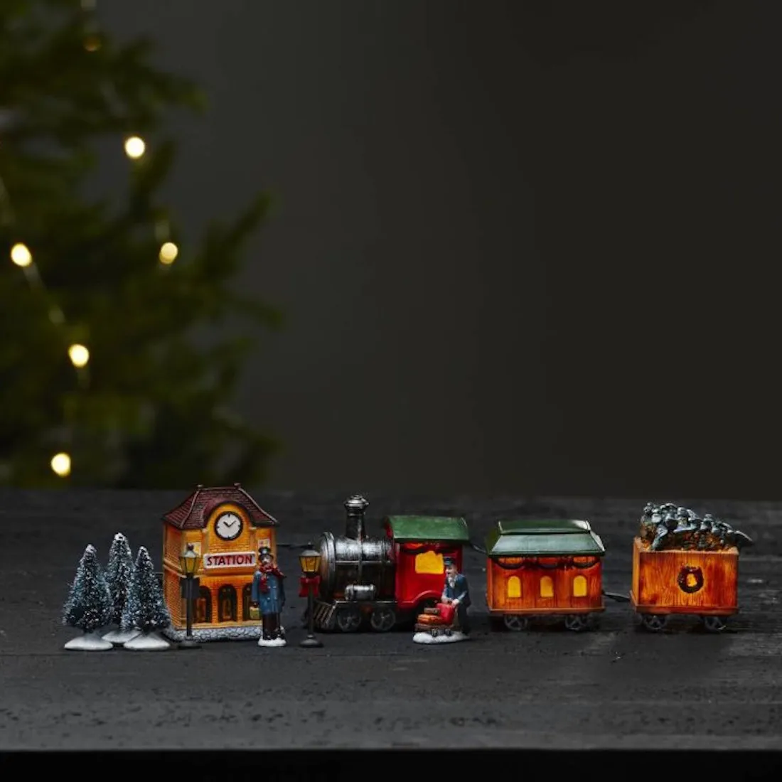 StarTrading Miniatyyri Kylä Junaasema Led valolla 12-os