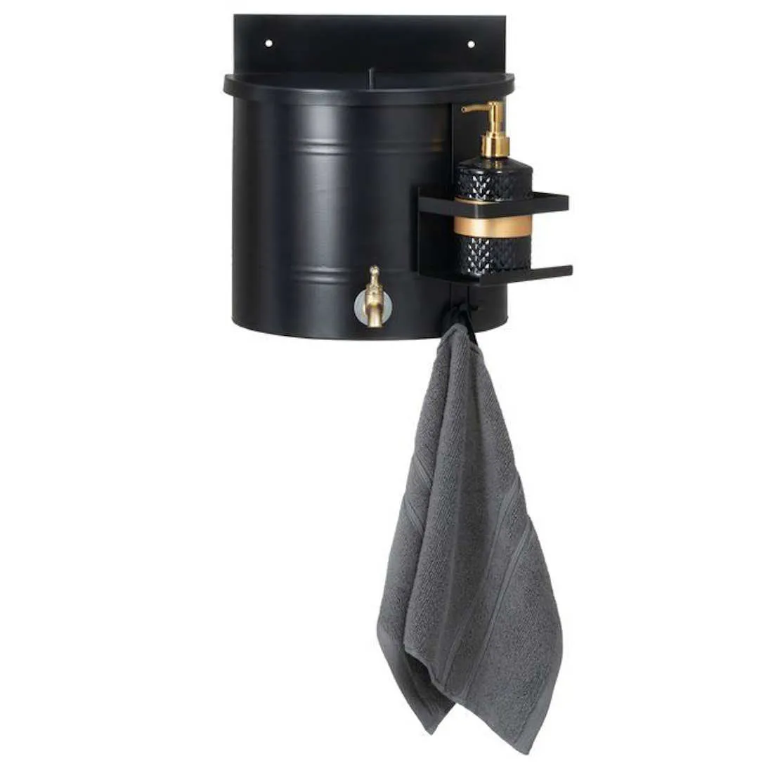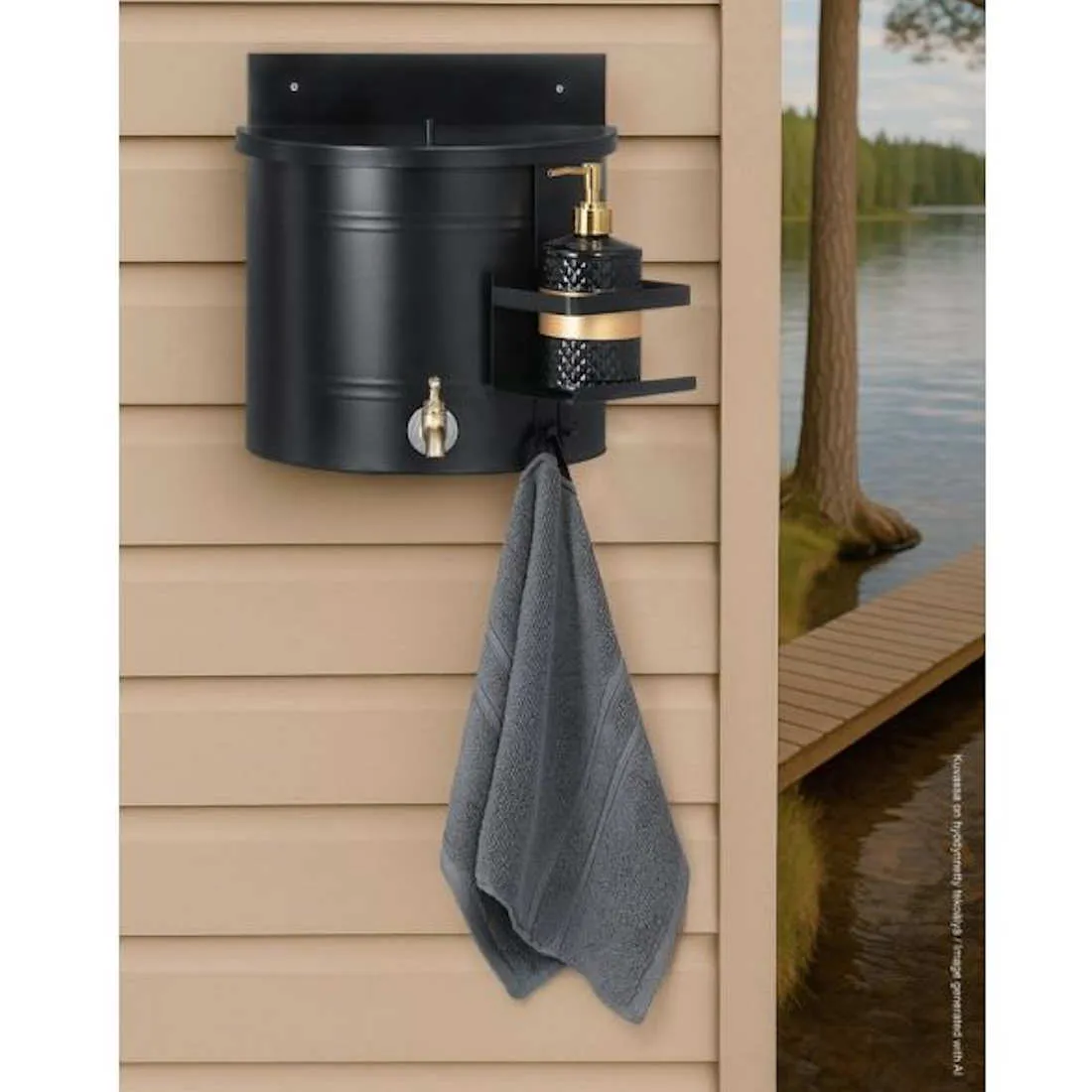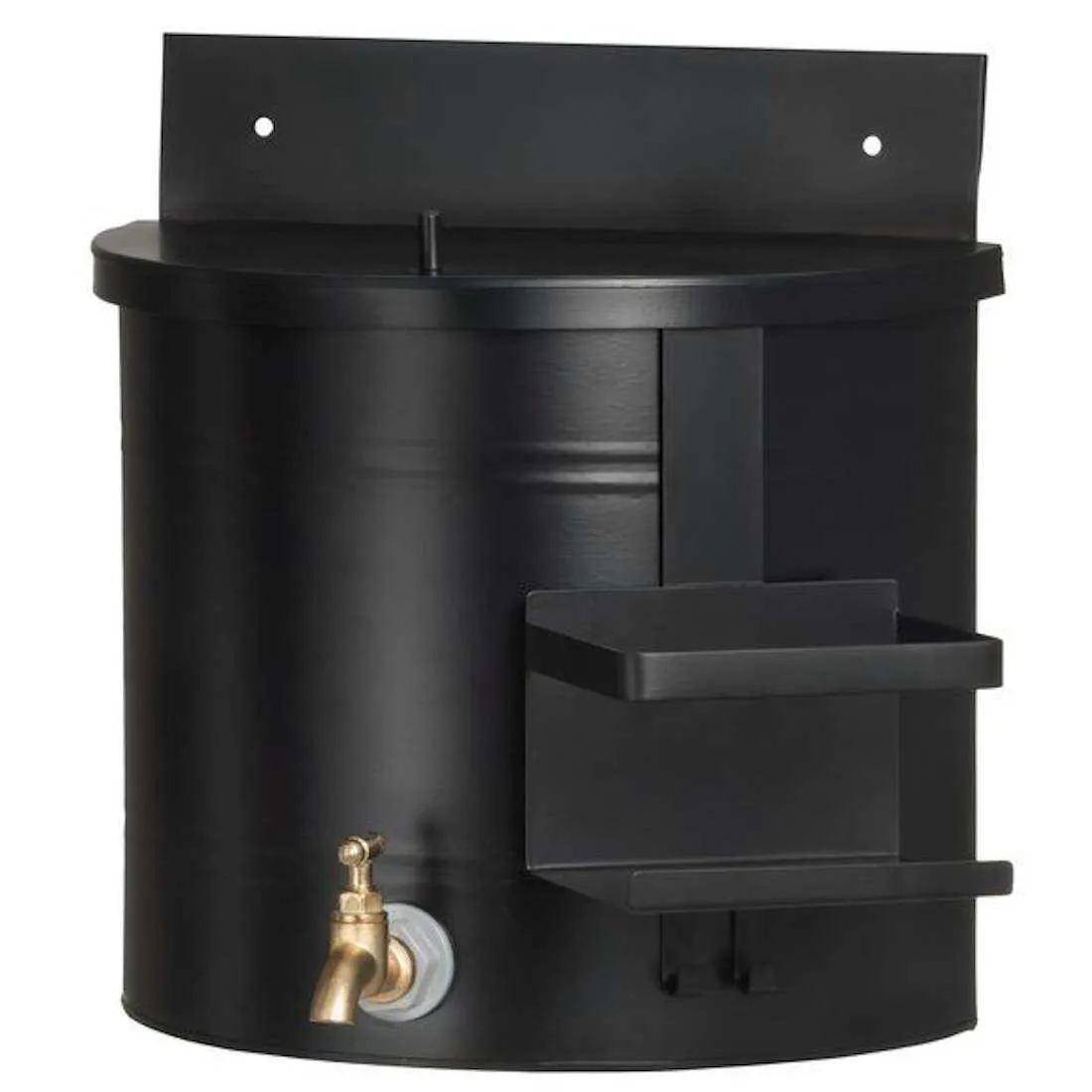 Musta väri antaa pesusäiliölle ajattoman ilmeen, joka sopii erilaisiin ulkotiloihin. Tuote soveltuu puutarhaan, mökille ja muihin ulkokohteisiin, joissa tarvitaan helppoa veden annostelua käsienpesua varten.