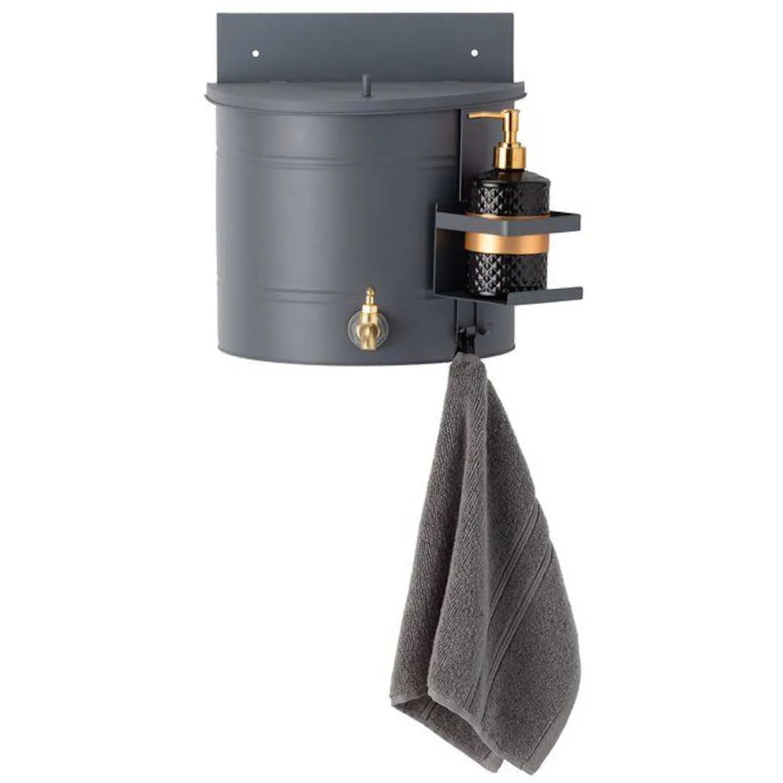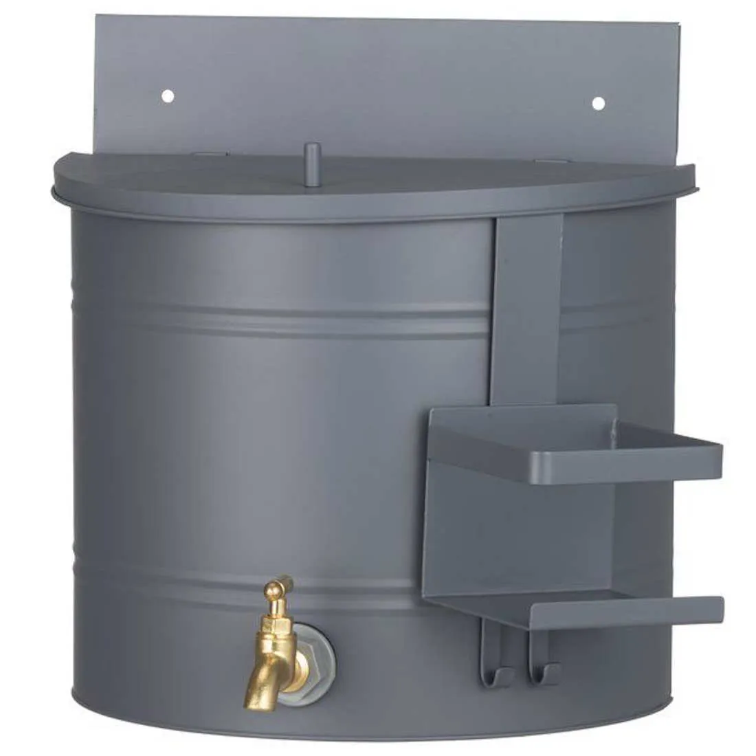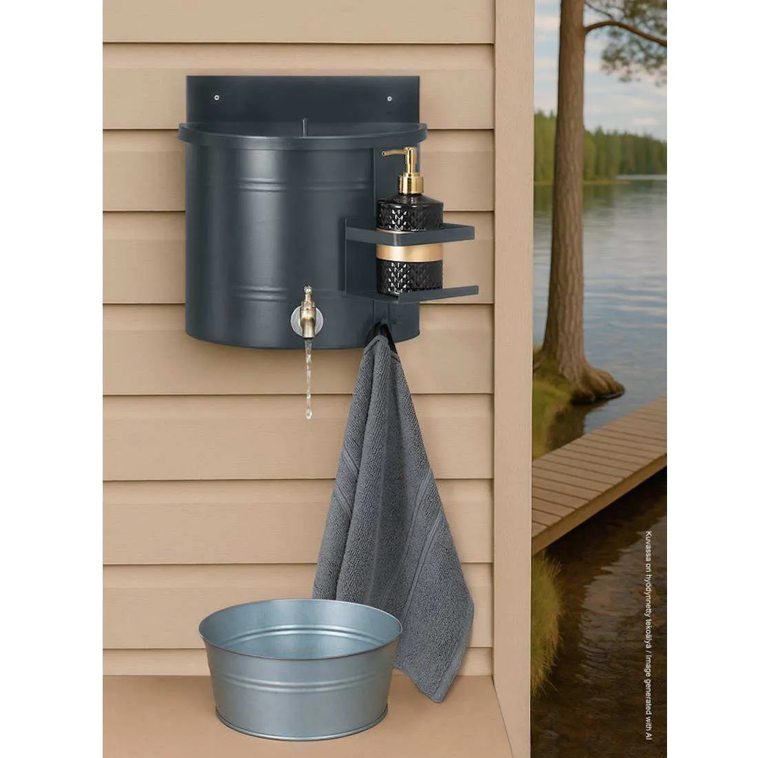 Antrasiitin värinen pesusäiliö sopii moderniin ja ajattomaan pihapiiriin. Tuote soveltuu puutarhaan, mökille ja muihin ulkokohteisiin, joissa tarvitaan helppoa veden annostelua käsienpesua varten.
