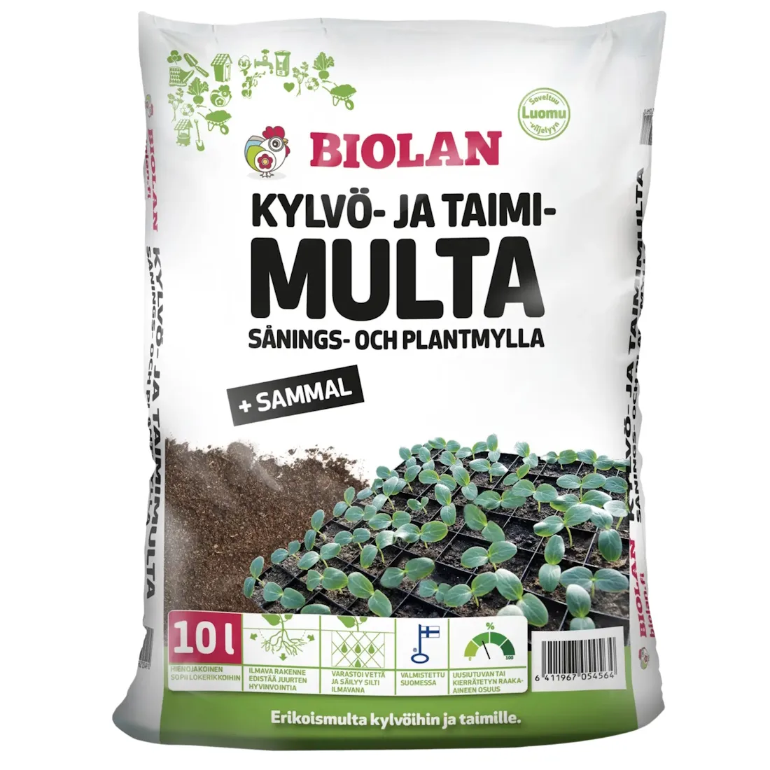 Biolan Kylvö- ja taimimulta on erityisesti kylvöihin ja taimikasvatukseen kehitetty hienojakoinen multaseos. Multaan lisätty rahkasammal parantaa mullan ilmavuutta ja auttaa pitämään kasvualustan sopivan kosteana taimien kasvun aikana. Tuote soveltuu myös luomukasvatukseen.
