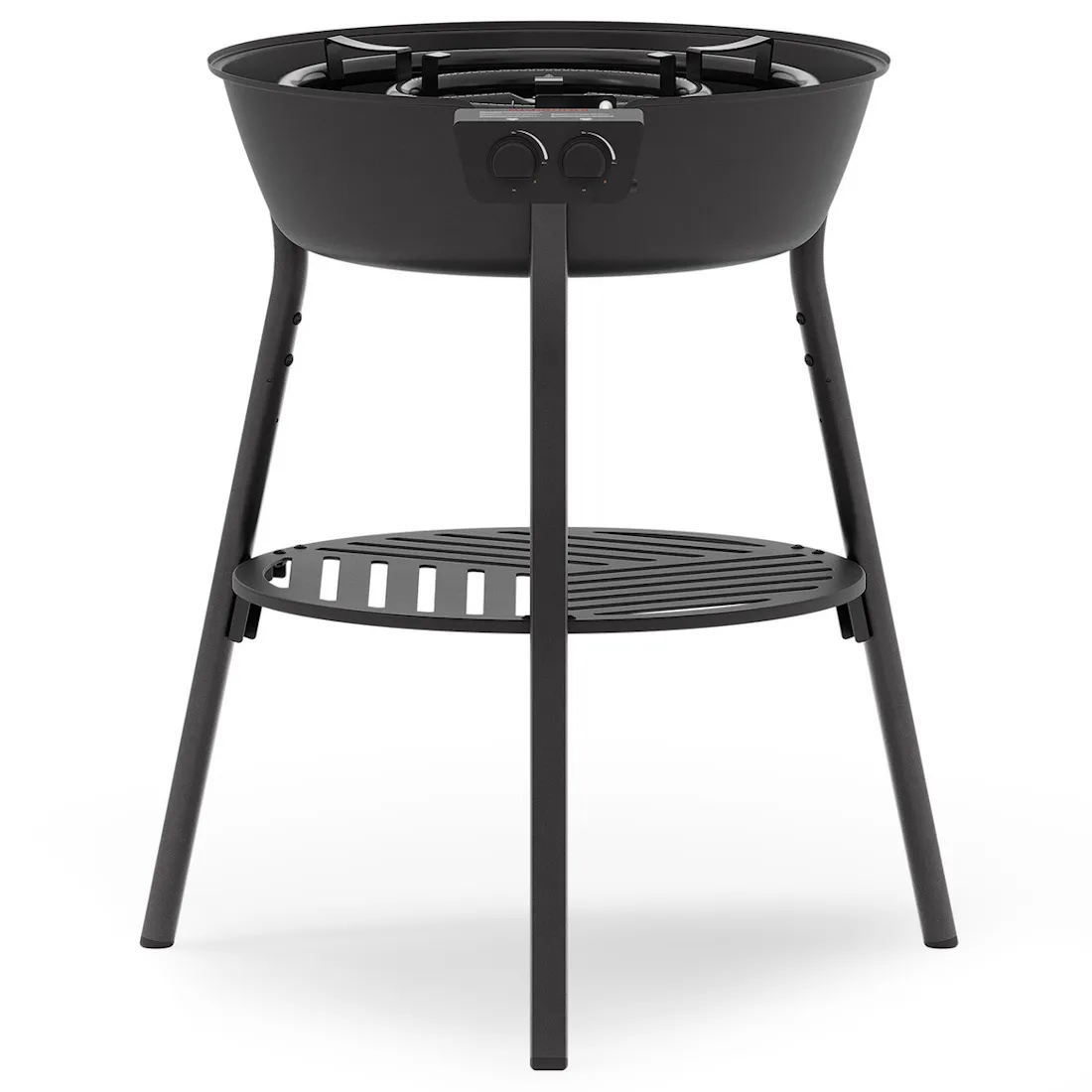 Emaloitu rakenne kestää kovaa käyttöä, ja tukeva metallijalusta sekä pitkät D-profiilijalat takaavat vakaan työskentelyalustan. Kiinteä, kulhomainen tuulensuoja suojaa liekkejä ja auttaa säilyttämään tasaisen lämmön myös tuulisissa olosuhteissa.