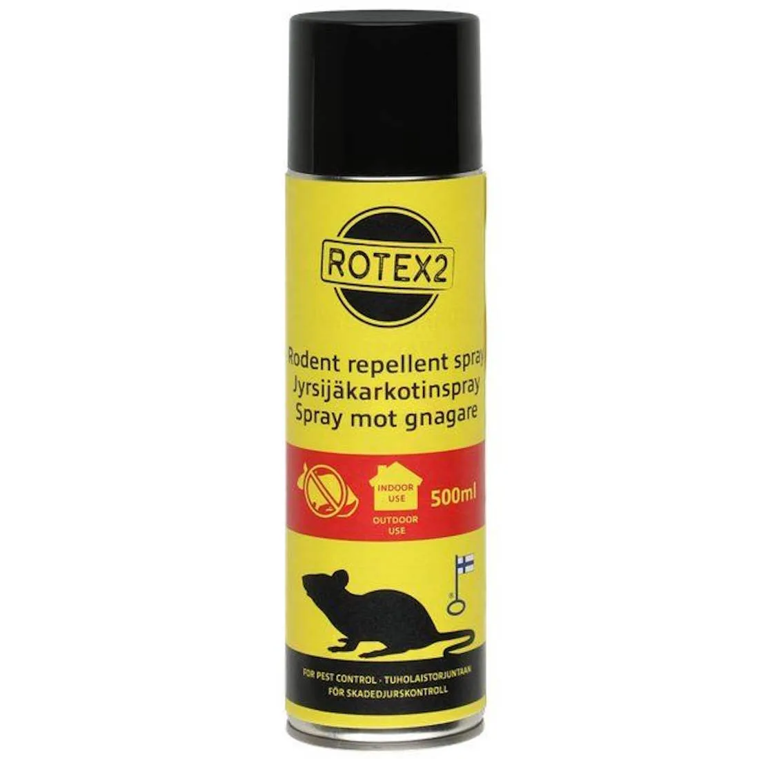 Tehokas jyrsijäkarkotespray toimii hyvin rottia, hiiriä ja muita jyrsijöitä vastaan. Jyrsijöiden herkälle hajuaistille suihkeen tuoksu on epämiellyttävä, joten ne pysyvät käsitellyiltä pinnoilta tehokkaasti poissa kasvipohjaisen tehoaineen avulla. Tuote on myrkytön. Huom. tuote sisältää geraniolia ja kasviöljyjä. Tämä voi aiheuttaa allergisia reaktioita. Voidaan käyttää missä tahansa mihin jyrsijöitä ei haluta. Suihkuta tasaisesti suojattavaan kohteeseen n. 30 cm etäisyydeltä. On suositeltavaa toistaa toimenpide 2 viikon välein. Sopii sisä- ja ulkokäyttöön. Valmistettu Suomessa.