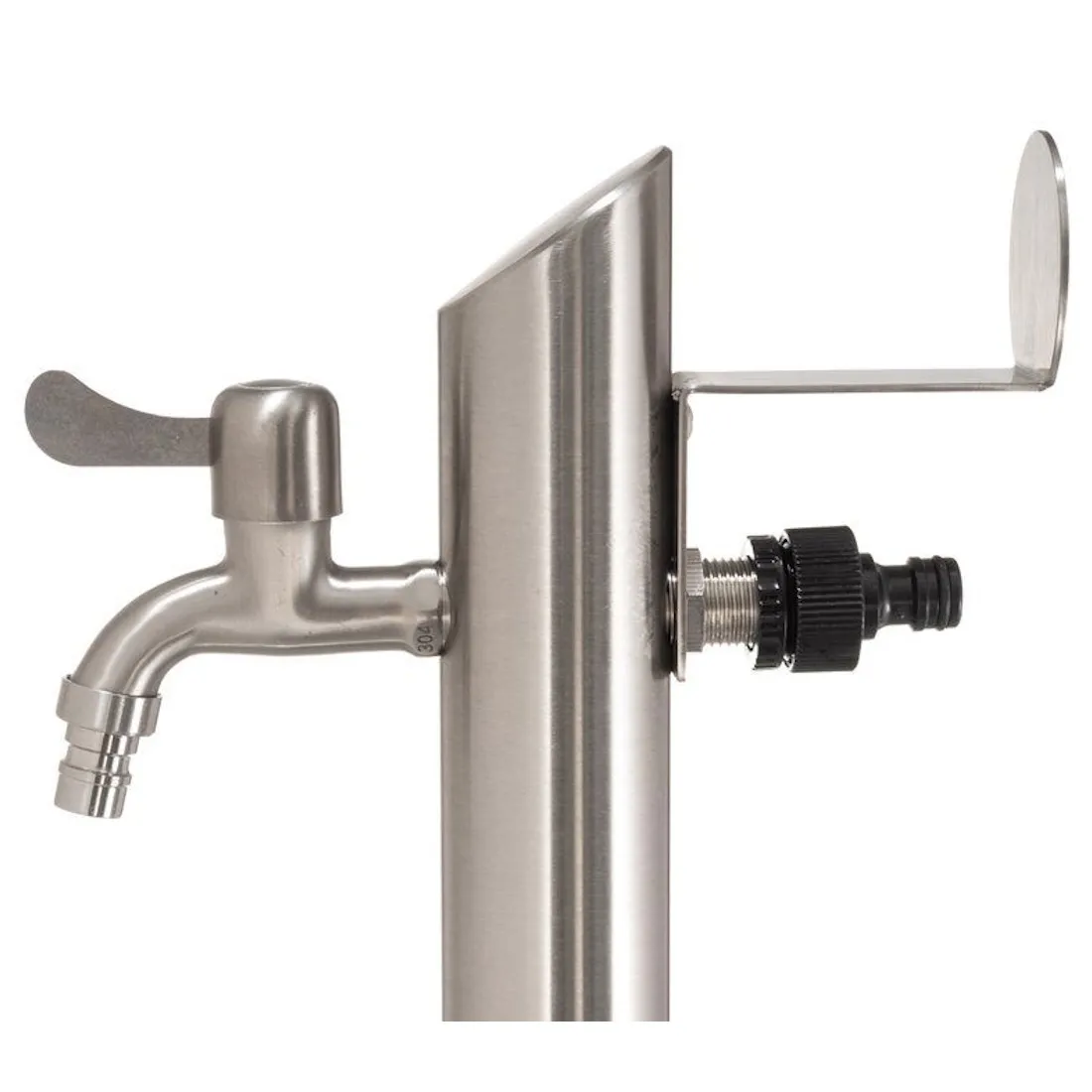 Pylväässä on yläliitäntä puutarhaletkulle sekä integroitu letkuteline, jonka ansiosta letku on helppo säilyttää siististi ja kätevästi käytön jälkeen.