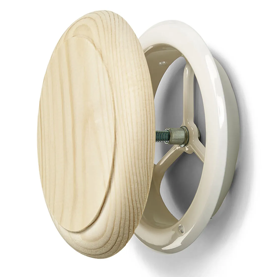 Lautasventtiili PL Ø100 mm – Valkoinen runko / Mänty etuosa Ø125 mm